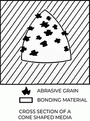 Determine the function of the process you are performing and the level of finish you wish to achieve. Media are formulated with variations in abrasive type, grit size, and bonding agents, and are then formed into specific shapes and sizes. The abrasive is distributed throughout the media body.