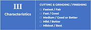 For example, if you select the fastest-cutting media to achieve the shortest deburring time, the resulting surface will be rougher, and a second process step may be required to burnish or polish the part in the final stage. Each media supplier uses different designations for their formulations to correspond with the outcomes defined by your process selection chart. (Chart III)