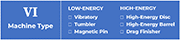 The energy of a machine may be adjustable, but its maximum energy level is fixed by the machine type. The higher the available energy, the more work the media can perform. If, at this stage of developing a process, a different machine type with a different energy capability is selected, return to Section V and choose smaller or larger size. (Chart VI)