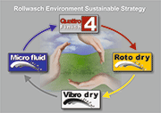 The Reach regulations have, in the meantime, obtained positive results. In addition, Rollwasch is continuously developing products and dry processes (Vibrodry, Rotodry), wet process with a reduced water consumption (Microfluid), and excellent wastewater compound from 2008 to present with at least ten patent requests that follow these principles being deposited.